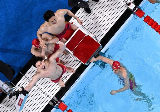 3分27秒46,中國游泳隊(duì)成功打破美國隊(duì)在該項(xiàng)目奧運(yùn)金牌上40年的壟斷,勇奪男子4X100米混合泳接力金牌。徐嘉余說:“和隊(duì)友并肩作戰(zhàn),我感覺特別有勁!”第三棒的孫佳俊說,平時(shí)戰(zhàn)術(shù)是堅(jiān)持5米不換氣,在決賽最后沖刺階段,自己堅(jiān)持了8米,“這次我必須拿出極限狀態(tài),為潘展樂爭取時(shí)間”。