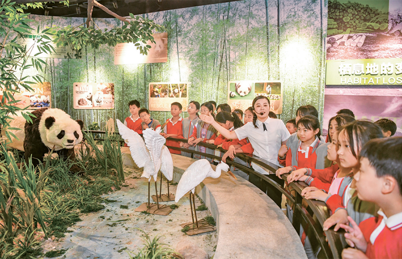 新時代以來,教育系統(tǒng)著力推動思想政治教育、專業(yè)教育與創(chuàng)新教育、社會實踐、志愿服務等的融合。圖為2024年5月17日,學生們在江西宜豐熊貓科技館開展“行走的思政課”主題科普教育活動,增強節(jié)約資源和保護自然環(huán)境意識。(人民圖片 周亮/攝)
