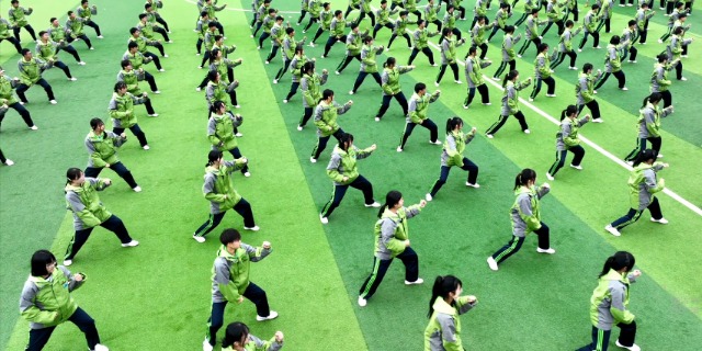 學(xué)生進(jìn)行團(tuán)體操練展示。