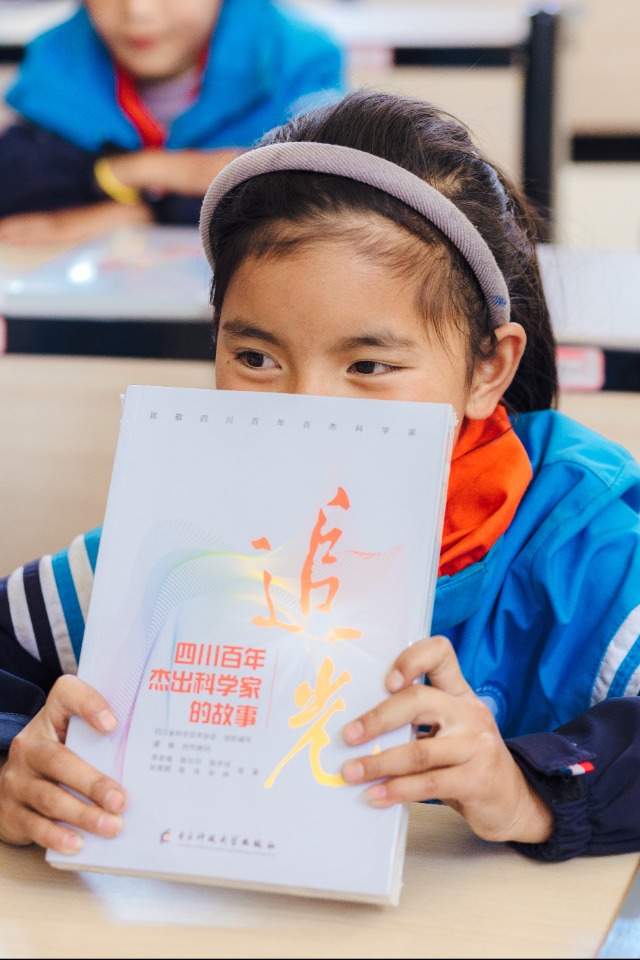 9月27日,四川師范大學(xué)攜手中國科學(xué)院光電技術(shù)研究所科學(xué)家精神教育基地,在四川省甘孜州九龍縣中學(xué)、甘孜城關(guān)小學(xué)及嘎爾鎮(zhèn)寄宿制小學(xué)成功舉辦“一對一”精準(zhǔn)幫扶“科學(xué)家精神進(jìn)校園”活動,為學(xué)生贈書。四川師范大學(xué)供圖