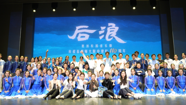 中國教育報-中國教育新聞網(wǎng)訊(記者 李澈)9月28日,首都師范大學(xué)附屬中學(xué)(以下簡稱“首都師大附中”)迎來了其建校110周年華誕。作為慶典活動的重磅環(huán)節(jié),該校師生攜手共創(chuàng)的大型AI多媒體原創(chuàng)音樂劇《后浪》,于9月27日至9月30日在首都師大附中的舞臺上精彩上演。
