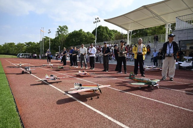 寶山區(qū)第三老年大學(xué)航空模型高級研修班的學(xué)員們在學(xué)習(xí)遙控滑翔機 劉曉晶 攝