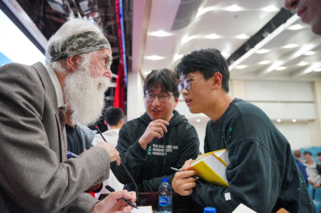 米歇爾·塔拉格蘭教授(左)與北航學(xué)生交流。學(xué)校供圖