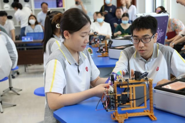天津益中學(xué)校人工智能創(chuàng)新實(shí)驗(yàn)室的同學(xué)們?cè)谶M(jìn)行動(dòng)手實(shí)踐