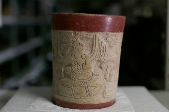 這是2023年6月8日在洪都拉斯科潘瑪雅遺址國際考古隊(duì)倉庫內(nèi)拍攝的由中洪聯(lián)合考古隊(duì)發(fā)掘出的陶器文物。新華社發(fā)(盧西奧·塔沃拉攝)