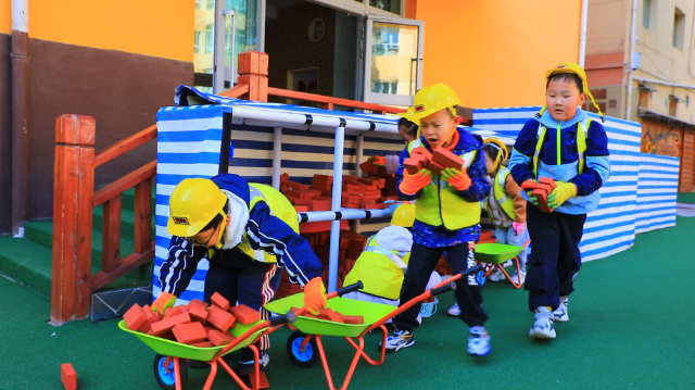 中國(guó)教育報(bào)-中國(guó)教育新聞網(wǎng)訊(通訊員 林冰瑩 記者 余闖)“我想給我們家小貓蓋一個(gè)房子”“我想搭一座大城堡”“我想建一座高塔”……近日一節(jié)活動(dòng)課上,青海省西寧市第一幼兒園的小朋友們身穿防護(hù)服、頭戴安全帽、手戴安全手套,有的捧著小方磚,有的推著小貨車,還有的拿著工具尺,快樂地沉浸在游戲中。