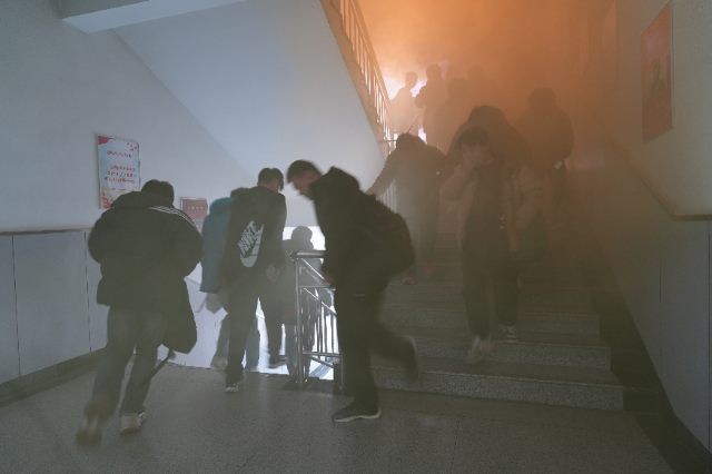 各二級學院也有序開展了教學樓疏散演練活動。師生在規(guī)定時間內沿著安全通道快速撤離,展現了良好的應急反應和組織能力。此外,學校還邀請了消防救援站官兵與校內微型消防站、義務消防隊聯合開展高層建筑物救援演練,為師生提供了真實的救援體驗。