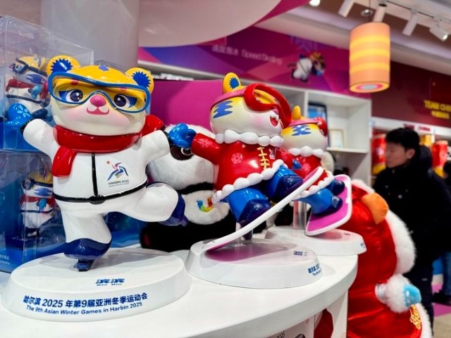 顧客在哈爾濱一家第九屆亞冬會(huì)特許商品零售店內(nèi)選購(gòu)商品(2025年1月28日攝)。新華社記者 劉赫?qǐng)?攝