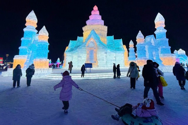 游客在哈爾濱冰雪大世界游玩(2025年1月27日攝)。新華社記者 楊思琪 攝