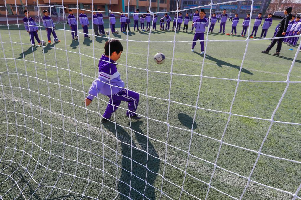 2025年2月25日,河北省遵化市第一實驗小學的學生在大課間練習足球。新華社發(fā)(劉滿倉 攝)