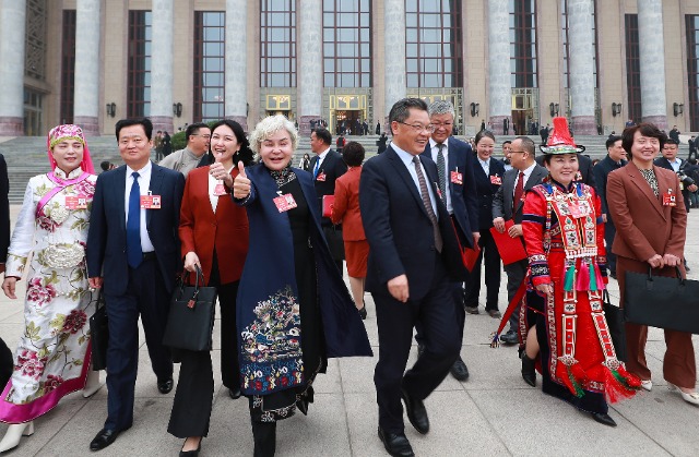 十四屆全國人大三次會議11日下午3時在人民大會堂舉行閉幕會。會議結(jié)束后,代表們走出會場。中國教育報-中國教育新聞網(wǎng)記者 張學軍 攝