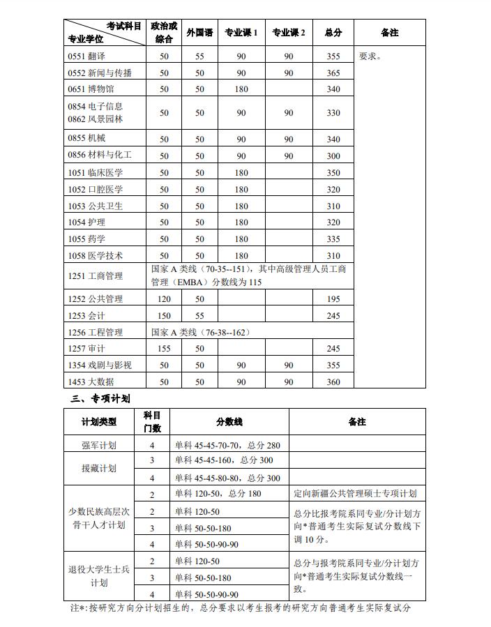 不低于國家基本分?jǐn)?shù)線中“報考‘少數(shù)民族高層次骨干人才計劃’考生”相應(yīng)學(xué)科專業(yè)的總分要求。