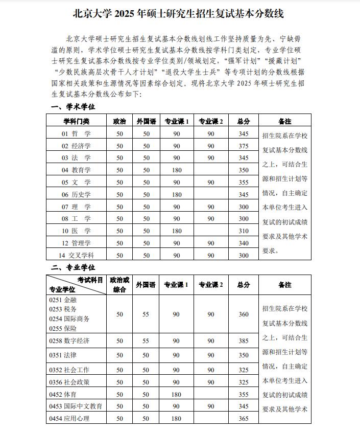 北京師范大學(xué)2025年碩士研究生招生學(xué)校復(fù)試基本分?jǐn)?shù)線