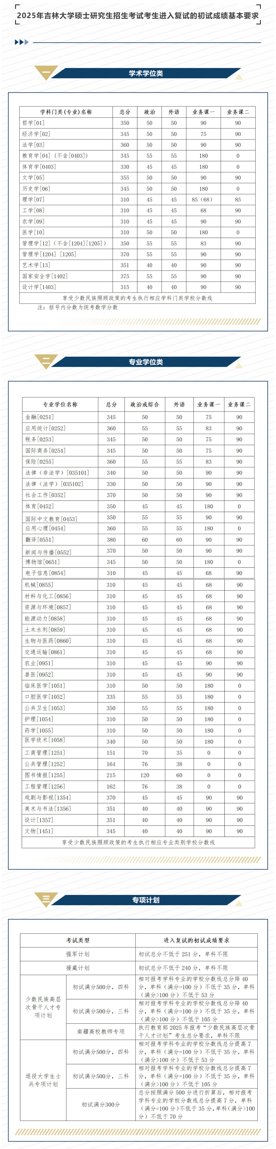 根據(jù)教育部有關(guān)文件精神,結(jié)合報考情況,同濟(jì)大學(xué)招生領(lǐng)導(dǎo)小組經(jīng)會議研究決定,同濟(jì)大學(xué)2025年全國碩士研究生招生考試進(jìn)入復(fù)試的初試成績基本要求如下: