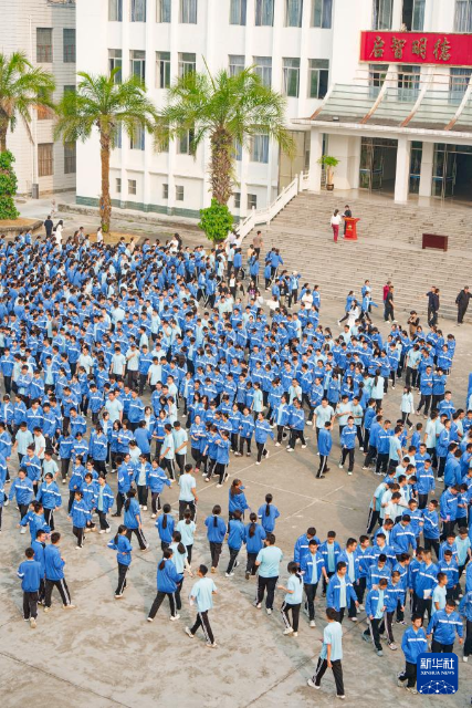 3月31日,瑞麗市第一民族中學師生在操場上活動。
