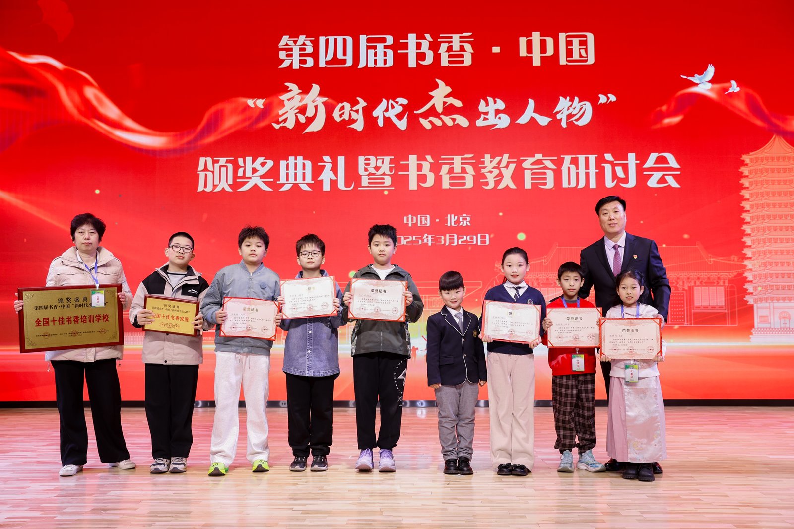 中國教育報-中國教育新聞網(wǎng)訊(記者 劉鈺)3月29日,第四屆書香·中國“新時代杰出人物”頒獎典禮在北京舉行。教育部原副部長張?zhí)毂?、全國養(yǎng)成教育研究總課題組副組長于華章等為“全國十佳書香校長”“全國十佳書香園長”“全國十佳書香教師”“全國十佳書香少年”等獎項獲獎人員頒發(fā)榮譽證書。