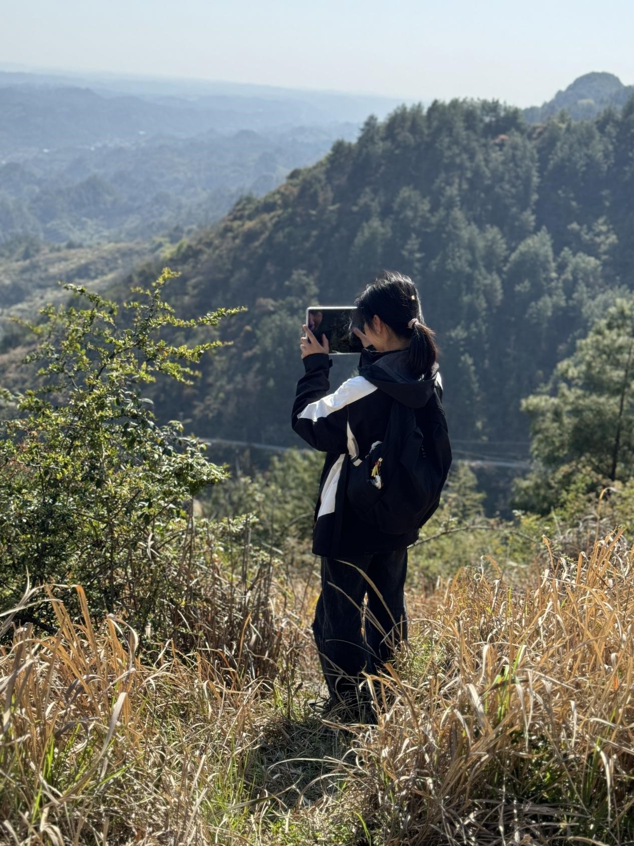 徒步2萬多步到達(dá)山頂,看著綠油油的山峰,滿心歡喜。李健攝