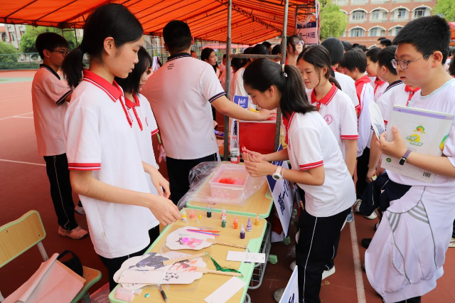 在班級成果展示環(huán)節(jié),班級通過各具特色的班本課程展示學(xué)科融合新范式。例如,高一(1)班就融合化學(xué)原理與傳統(tǒng)工藝,通過“花青素提取實驗”與“漆扇制作”,讓科學(xué)與美的感知在學(xué)生心中生根。