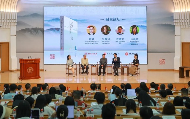 “通過引用詩詞闡釋中國精神、中國道路,是文化自信的有力彰顯”“中華詩詞既具有傳統(tǒng)的審美意趣,更在代代相傳間顯現(xiàn)出偉大的時(shí)代價(jià)值”“經(jīng)典永不會為時(shí)代所淘汰,每個(gè)人都能從總書記的引用詩詞中汲取力量”“無論是讀詩還是寫詩,終極追求都是‘為萬物賦形,為時(shí)代立心’”…… 圓桌論壇環(huán)節(jié),陳晉、李敬澤、谷曙光、中國人民大學(xué)新風(fēng)雅詩社社長(國學(xué)院2022級本科生)岳雨欣圍繞“引用詩詞對我國文學(xué)的繁榮乃至文化的發(fā)展將起到什么作用?”“如何理解古代詩詞在當(dāng)代的價(jià)值轉(zhuǎn)換?”“新時(shí)代青年學(xué)子應(yīng)該怎樣對待和應(yīng)用詩詞這一文學(xué)瑰寶?”等相關(guān)議題展開對談。