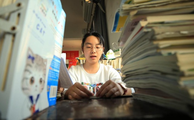湖南省衡陽縣第一中學(xué)的高三學(xué)生在教室早自習(xí),認(rèn)真復(fù)習(xí)備考(2019年6月4日攝)。新華社發(fā)(曹正平 攝)