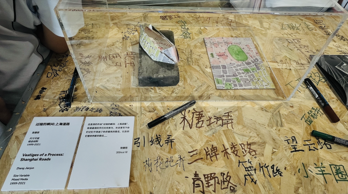活動現(xiàn)場,藝術(shù)家張健君邀請學(xué)生們和他共同創(chuàng)作,寫下記憶中最美的但已經(jīng)消失的上海街道的名字,或者他們喜歡的街道的名字,用獨(dú)特的藝術(shù)方式記錄城市記憶。