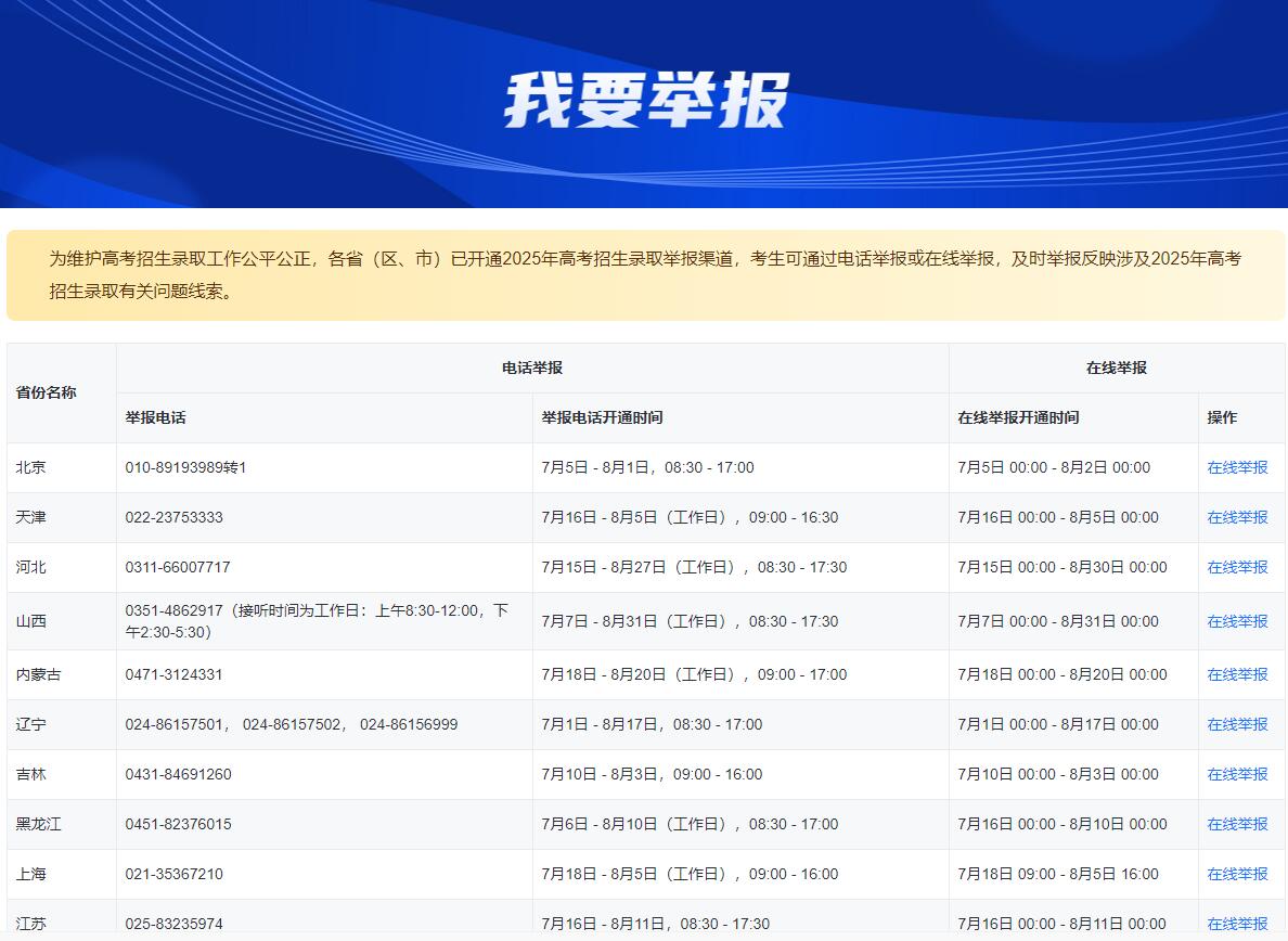 為維護高考招生錄取工作公平公正,各?。▍^(qū)、市)已開通2025年高考招生錄取舉報渠道,考生可及時舉報反映涉及2025年高考招生錄取有關問題線索。