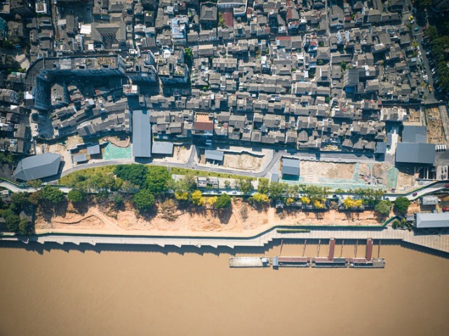 這是2023年11月23日拍攝的溫州朔門(mén)古港遺址(無(wú)人機(jī)照片)。新華社記者 江漢 攝