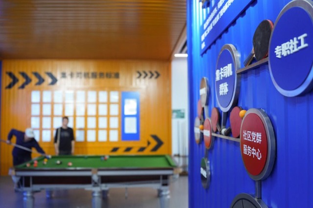 集裝箱卡車(chē)司機(jī)在寧波市北侖區(qū)霞浦街道物流工業(yè)社區(qū)“司機(jī)之家”休閑(2025年4月10日攝)。新華社記者 黃宗治 攝