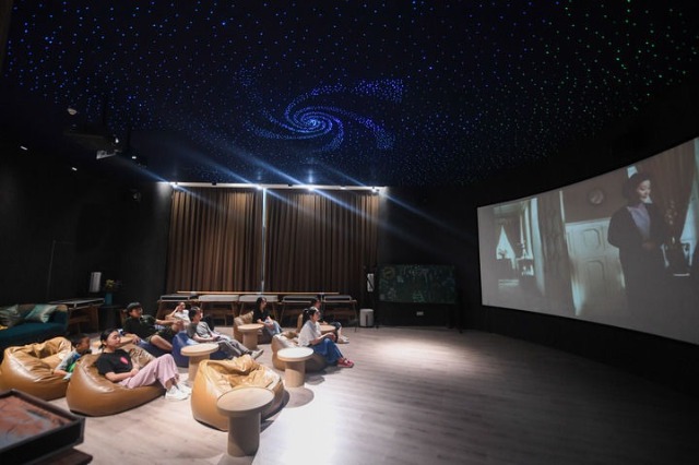 居民在位于杭州市富陽(yáng)區(qū)銀湖街道硅谷社區(qū)的“合之舍”書(shū)房的影視廳內(nèi)觀(guān)看電影。該書(shū)房是銀湖街道“15分鐘品質(zhì)文化生活圈”的重要示范點(diǎn)(2022年7月2日攝)。新華社記者 徐昱 攝