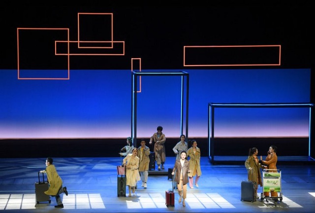 ?浙江小百花越劇院的演員在杭州蝴蝶劇場(chǎng)演出新編現(xiàn)代戲《錢(qián)塘里》(2024年5月1日攝)。新華社記者 翁忻旸 攝