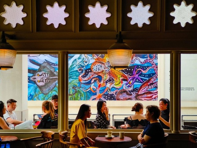 人們在成都大源中央公園內(nèi)咖啡館喝咖啡。新華社記者 沈伯韓 攝