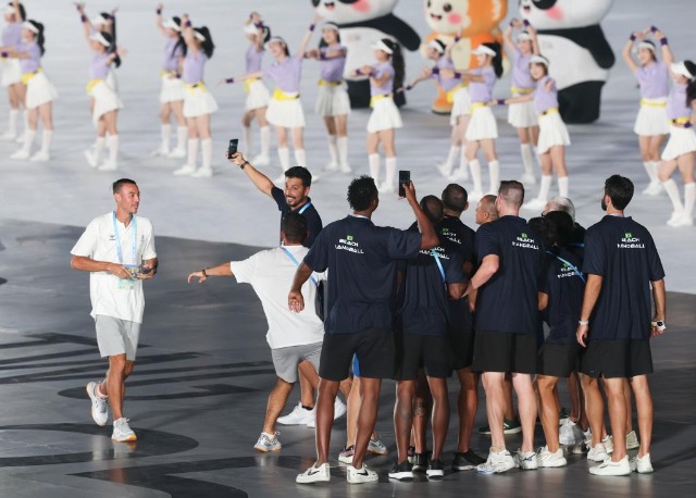 8月7日,巴西體育代表團成員在開幕式現(xiàn)場自拍留念。 新華社記者 姜克紅 攝