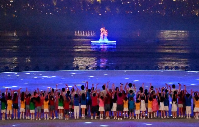 8月7日,主火炬在開幕式現(xiàn)場被點燃。新華社記者 鄔惠我 攝