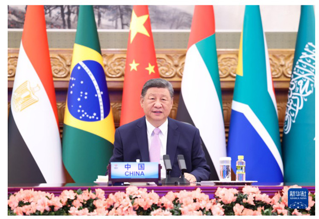 習(xí)近平指出,當(dāng)前,世界百年變局加速演進(jìn),霸權(quán)主義、單邊主義、保護(hù)主義甚囂塵上。金磚國(guó)家作為全球南方第一方陣,要堅(jiān)持弘揚(yáng)開放包容、合作共贏的金磚精神,共同捍衛(wèi)多邊主義,維護(hù)多邊貿(mào)易體制,推進(jìn)“大金磚合作”,攜手構(gòu)建人類命運(yùn)共同體。