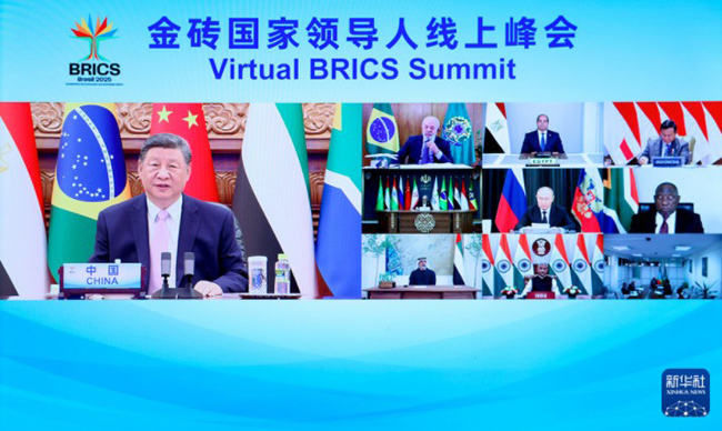 9月8日晚,國(guó)家主席習(xí)近平出席金磚國(guó)家領(lǐng)導(dǎo)人線上峰會(huì),并發(fā)表題為《團(tuán)結(jié)合作砥礪前行》的重要講話。新華社記者黃敬文攝