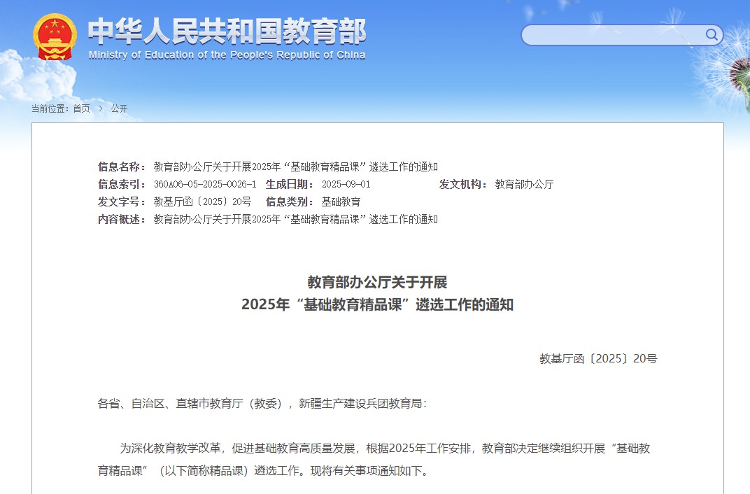 2025年“基礎(chǔ)教育精品課”遴選工作的通知