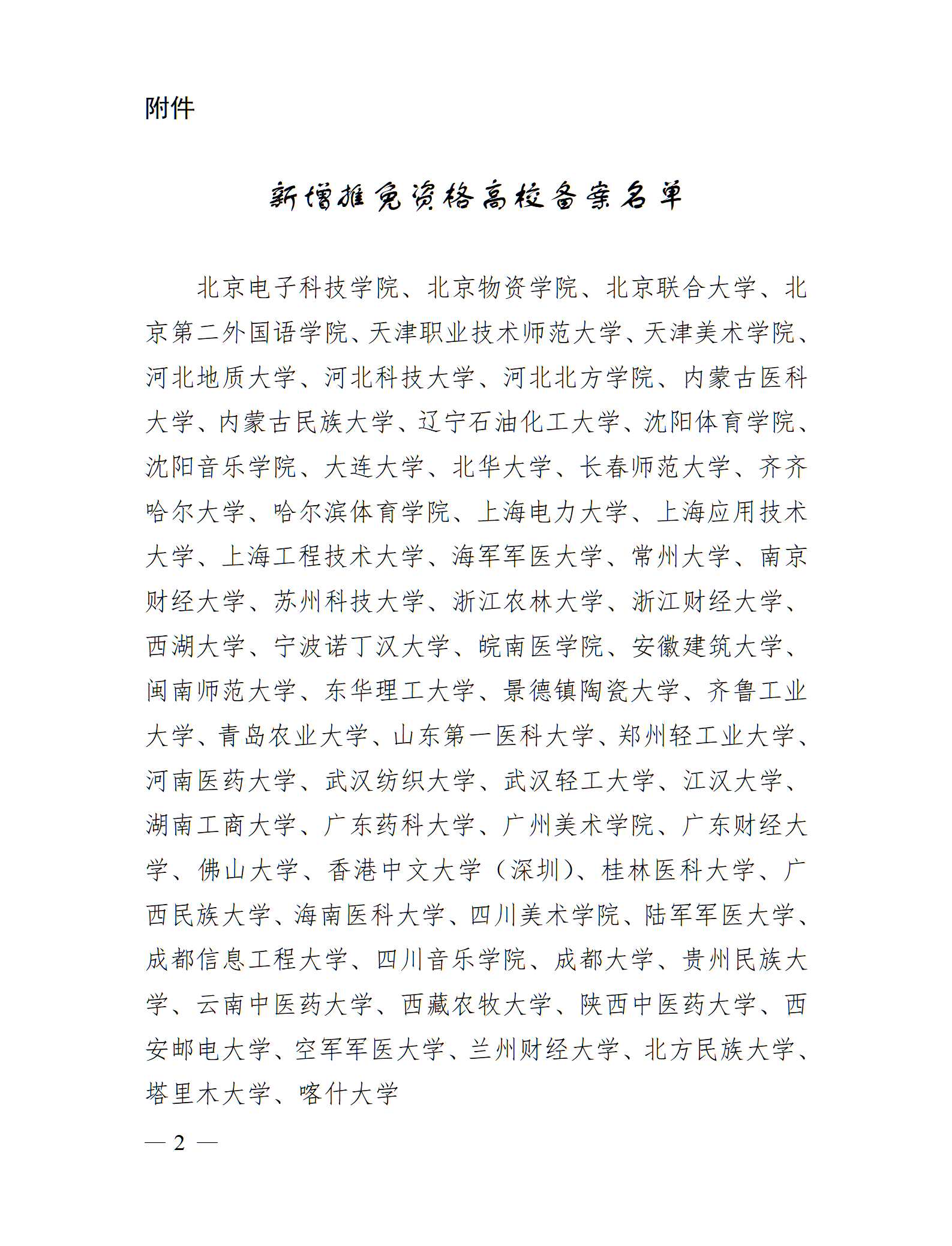 附件:新增推免資格高校備案名單