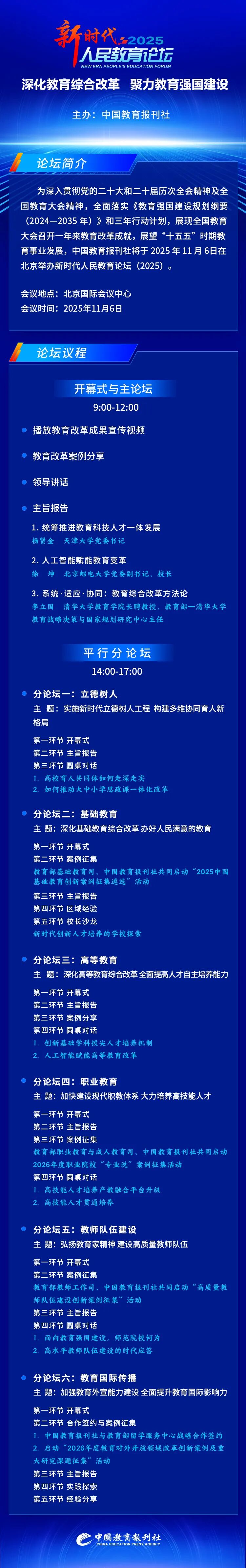 作為中國教育報(bào)刊社重點(diǎn)打造的年度高端論壇,新時代人民教育論壇旨在緊扣教育的政治屬性、人民屬性和戰(zhàn)略屬性,充分發(fā)揮教育主流媒體的平臺與渠道優(yōu)勢,致力于——