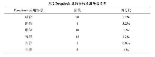 從當(dāng)前統(tǒng)計(jì)數(shù)據(jù)來(lái)看,高校對(duì)DeepSeek模型的應(yīng)用以綜合性部署為主,占比高達(dá)72%,涵蓋教學(xué)支持、科研輔助、教學(xué)管理與學(xué)習(xí)評(píng)價(jià)等多個(gè)功能,顯示出高校在頂層設(shè)計(jì)上對(duì)大模型賦能教育的系統(tǒng)性思維。相較之下,聚焦于助教(3.2%)、管理(12%)、科研(4%)、評(píng)價(jià)(0.8%)與助學(xué)(8%)的單一功能部署比例較低。不同類(lèi)型高校在部署DeepSeek的場(chǎng)景選擇上存在差異,可能受制于組織數(shù)字能力、學(xué)科布局結(jié)構(gòu)、教師數(shù)字素養(yǎng)等多重變量。后續(xù)研究可結(jié)合問(wèn)卷與個(gè)案訪談,進(jìn)一步識(shí)別影響各類(lèi)場(chǎng)景部署優(yōu)先級(jí)的深層因素。未來(lái)應(yīng)進(jìn)一步推動(dòng)各場(chǎng)景應(yīng)用之間的協(xié)同、數(shù)據(jù)互通與機(jī)制聯(lián)動(dòng),在保障數(shù)據(jù)安全與倫理合規(guī)的前提下,建構(gòu)以大模型為核心的教育數(shù)智生態(tài)體系。