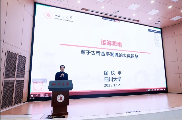 中國(guó)教育報(bào)-中國(guó)教育新聞網(wǎng)訊(通訊員 楊晨)12月21日晚,四川大學(xué)江安校區(qū)水上報(bào)告廳座無(wú)虛席,氣氛熱烈,四川大學(xué)杰出教授徐玖平講授2025年度公開(kāi)課《運(yùn)籌思維——源于古哲合乎潮流的大成智慧》。500余名師生以及部分校友、企業(yè)家代表齊聚現(xiàn)場(chǎng),共同聆聽(tīng)這場(chǎng)思想盛宴。課上同步開(kāi)通了線(xiàn)上會(huì)議平臺(tái),清華大學(xué)、上海交通大學(xué)、美國(guó)麻省理工學(xué)院、英國(guó)薩里大學(xué)、新加坡國(guó)立大學(xué)等高校師生也在線(xiàn)參與。
