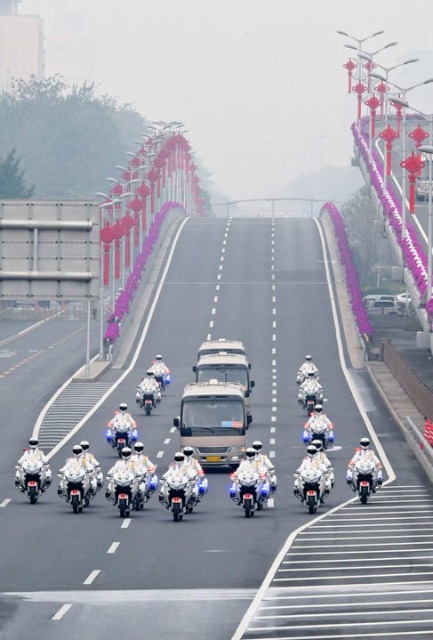 載著英雄的禮賓車隊從住地出發(fā),在禮賓摩托車隊護衛(wèi)下,駛上復興路,駛入長安街,駛向人民大會堂。