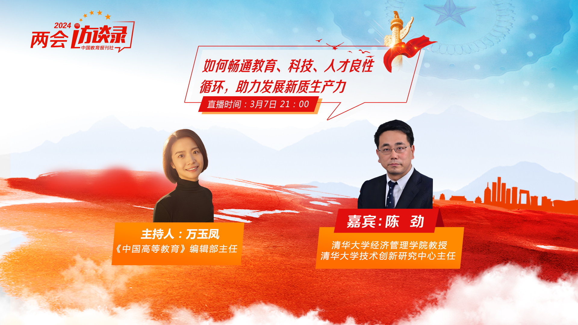 今年的政府工作報告提出,要加快發(fā)展新質生產力,深化教育科技人才綜合改革,為現(xiàn)代化建設提供強大動力。高校怎樣找準深化教育科技人才綜合改革的著力點,全面提升自主創(chuàng)新能力,推動新質生產力加快發(fā)展?本次訪談以“如何暢通教育、科技、人才良性循環(huán),助力發(fā)展新質生產力”為題,特邀清華大學經管學院教授、清華大學技術創(chuàng)新研究中心主任陳勁與我們共同探討。