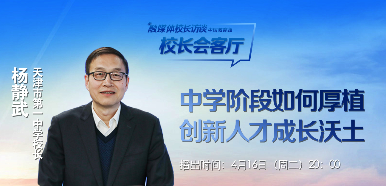 中學(xué)階段如何夯實(shí)創(chuàng)新人才培養(yǎng)基點(diǎn),厚植創(chuàng)新人才成長(zhǎng)的沃土?4月16日20:00,中國(guó)教育報(bào)融媒體校長(zhǎng)訪談“校長(zhǎng)會(huì)客廳”第1期,我們邀請(qǐng)?zhí)旖蛞恢行iL(zhǎng)楊靜武做客直播間,與我們分享天津一中的經(jīng)驗(yàn)與思考。