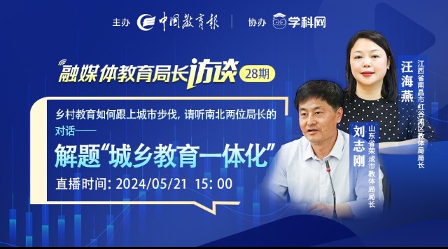 中國(guó)教育新聞網(wǎng)訊(記者 焦小新)今年的政府工作報(bào)告提出,要“加快建設(shè)高質(zhì)量教育體系,推進(jìn)義務(wù)教育優(yōu)質(zhì)均衡發(fā)展和城鄉(xiāng)一體化”。具體到區(qū)域?qū)用?,如何因地制宜地推?dòng)教育高質(zhì)量發(fā)展、建設(shè)教育強(qiáng)國(guó)、辦好人民滿意的教育?本期,《中國(guó)教育報(bào)》融媒體教育局長(zhǎng)訪談欄目邀請(qǐng)到山東省榮成市教育和體育局局長(zhǎng)劉志剛先生和江西省南昌市紅谷灘區(qū)教體局局長(zhǎng)汪海燕女士做客直播間。兩位局長(zhǎng)將開啟一場(chǎng)跨越南北的教育對(duì)話,敬請(qǐng)關(guān)注!