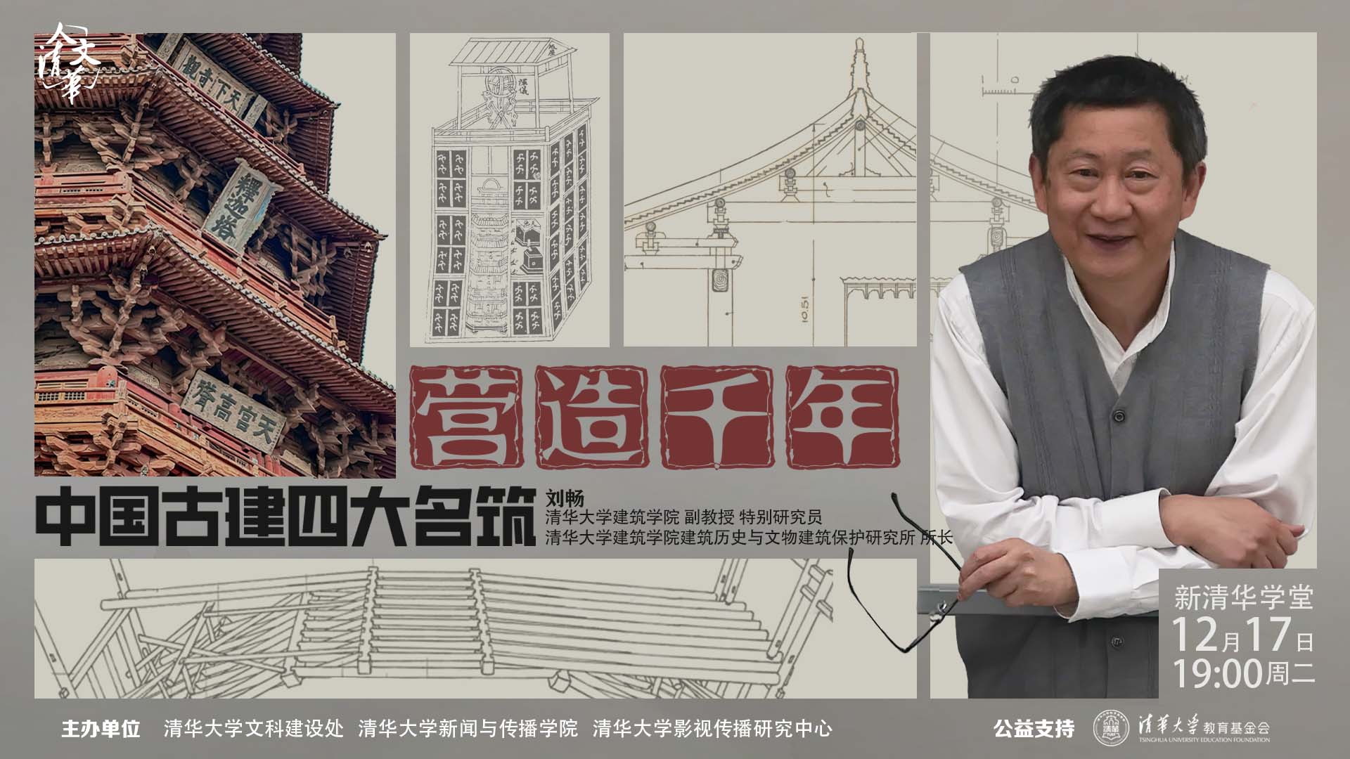 12月17日晚7點,人文清華講壇,清華大學建筑學院建筑歷史與文物建筑保護所所長劉暢帶來千挑萬選的四大名筑,帶我們管中窺豹,了解中國古建筑及其中蘊涵的超凡智慧。