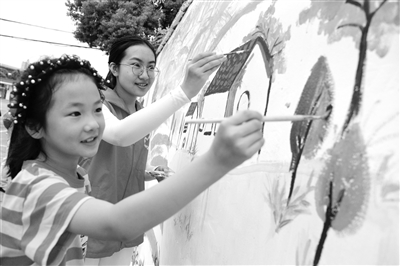 近日,在江蘇省鎮(zhèn)江市潤州區(qū)秀山村,江蘇大學(xué)志愿者帶著小朋友一起在墻上描繪鄉(xiāng)村振興、歡樂生活、綠色生態(tài)等一幅幅“美麗鄉(xiāng)村”主題畫,美化村莊環(huán)境,傳遞文明和諧正能量。