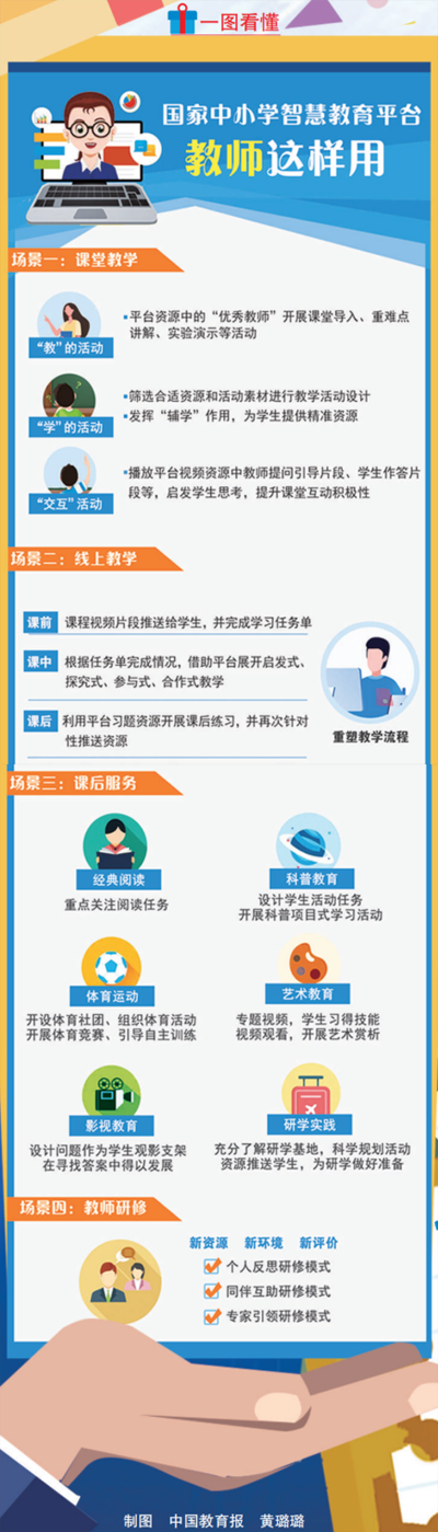 記者:平臺(tái)運(yùn)行半年來(lái),在資源建設(shè)等方面取得了很大突破,為師生帶來(lái)諸多便利,但有教師反映,在實(shí)踐中存在平臺(tái)資源和一線教學(xué)應(yīng)用難以融合的問(wèn)題,對(duì)于教師在課堂教學(xué)實(shí)踐中用好平臺(tái)資源,您有什么好的建議?