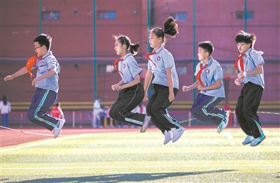 9月13日,內(nèi)蒙古呼和浩特市玉泉區(qū)通順街小學學生課后在操場上進行趣味跳繩比賽。新學期開學以來,該校進一步貫徹落實好“雙減”政策,開展體育類等多種多樣的課后服務(wù)活動。丁根厚 攝