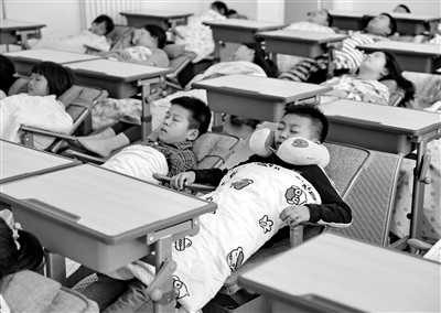 近日,河北省秦皇島市海港區(qū)在水一方小學(xué)學(xué)生使用可調(diào)節(jié)午休課桌椅休息。