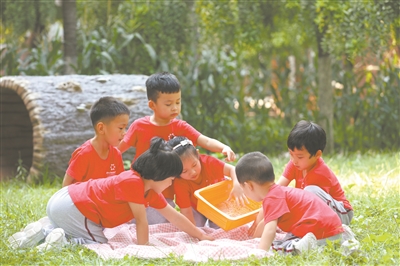 “在這里,幼兒可以爬山登高、騎車游泳,一起數(shù)大樹年輪,一起幫螞蟻搬家……由此形成了獨具特色的‘源生態(tài)’教育課程體系,真正踐行了陶行知、陳鶴琴等教育家提出的‘生活即教育’?!备眻@長王岔莊說,作為幼兒生活的一部分,生態(tài)環(huán)境服務(wù)于課程生態(tài)、園本課程,綜合指向“育人”第一要務(wù)。